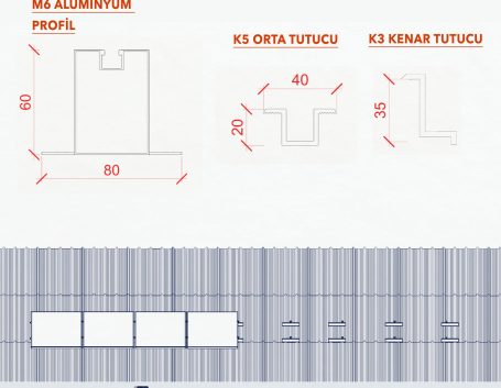 Kit İçeriği: M6 Alüminyum Parça Profil (18 adet), Orta Clamp Set (14 adet), Kenar Clamp Set (4 adet), Ejot Muadili Sivri Vidalar (74 adet), EPDM Sızdırmazlık Bandı (5 m)